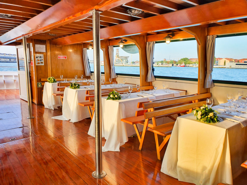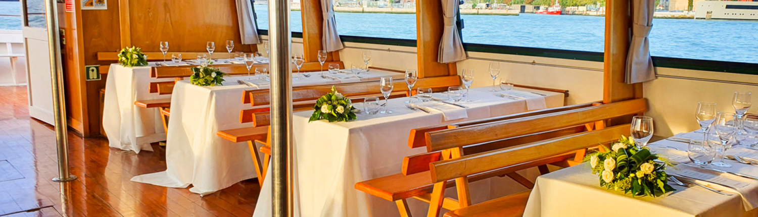 Il tuo pranzo o cena saranno serviti dai nostri camerieri nella massima comodità; è previsto, infatti, un posto a sedere per ognuno degli ospiti a bordo.