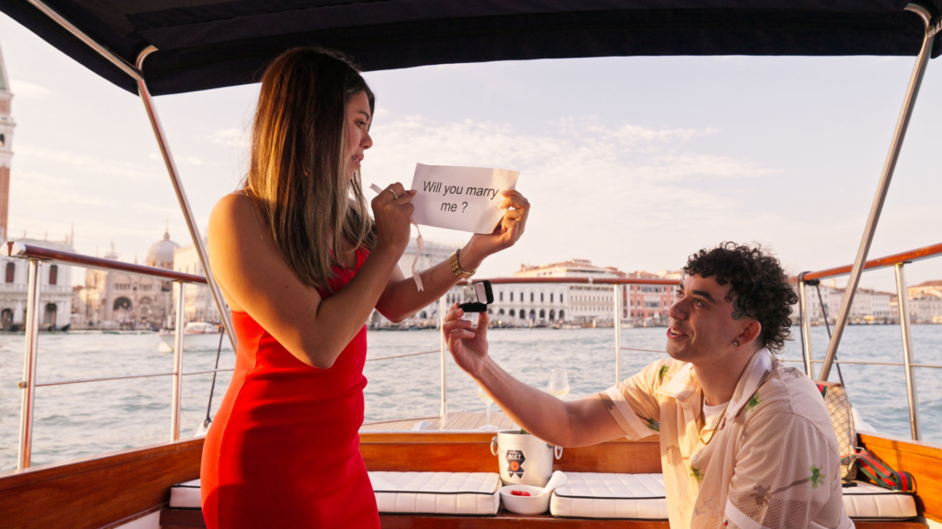 Voi due, un’intera barca e il suo equipaggio a vostra completa disposizione; il tramonto sul mare, una cena a lume di candela e, nel brindisi finale, il fatidico momento: “Mi vuoi sposare?”
