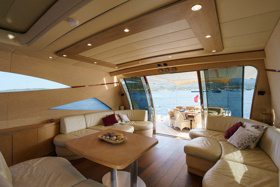 Elegante e confortevole, i suoi ampi spazi sono perfetti per una per il tuo relax, che sia una festa privata, una giornata o una settimana in crociera nella meravigliosa Costa Smeralda.